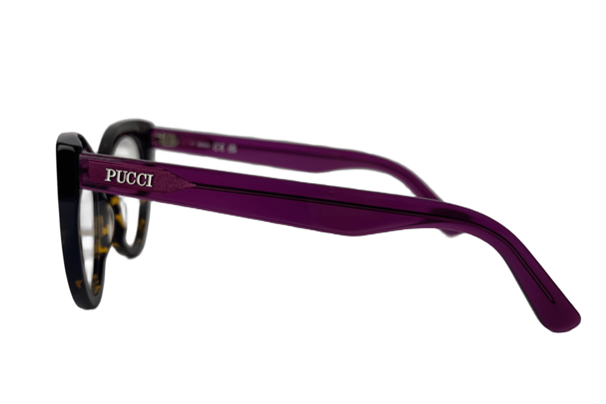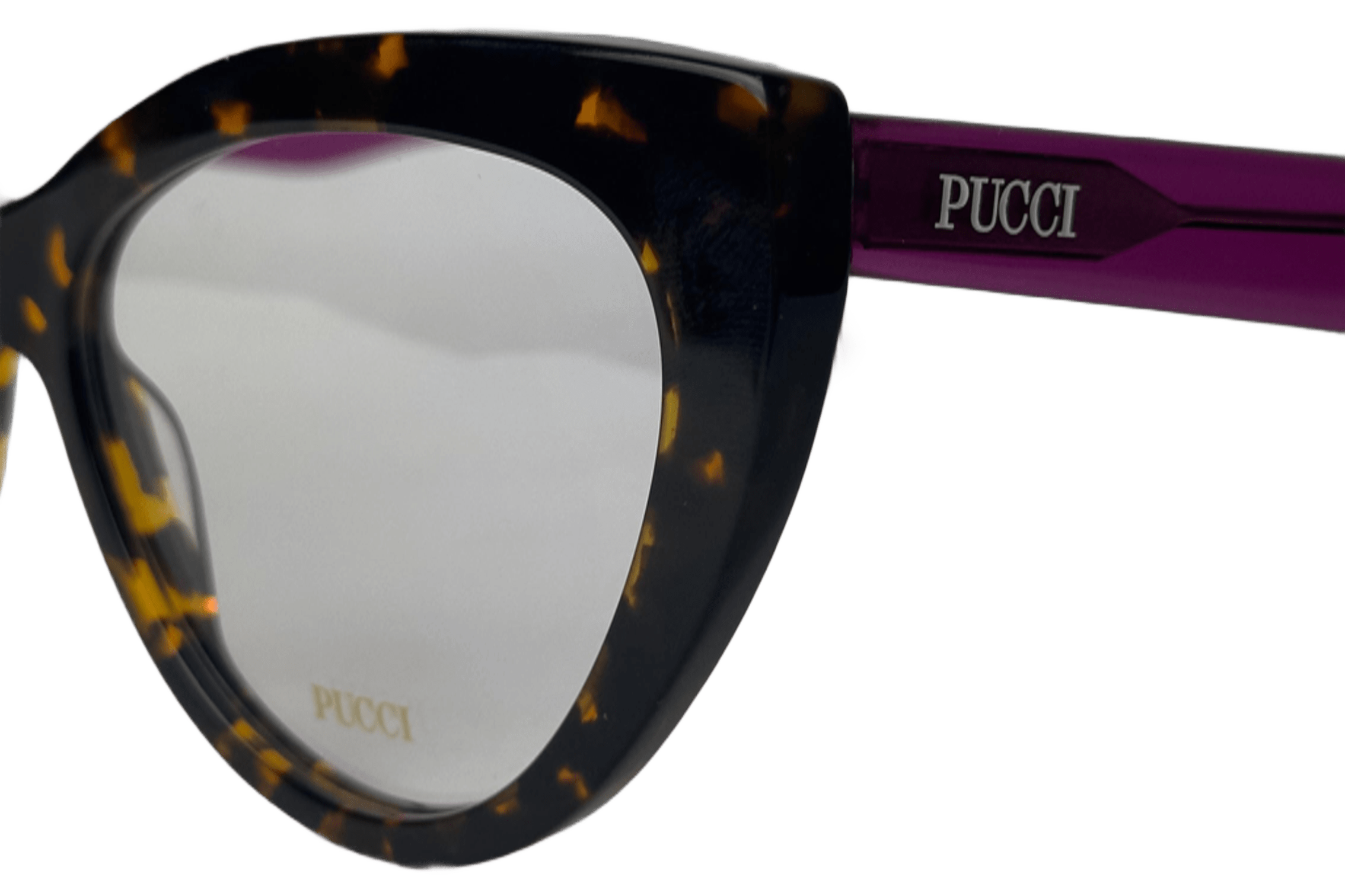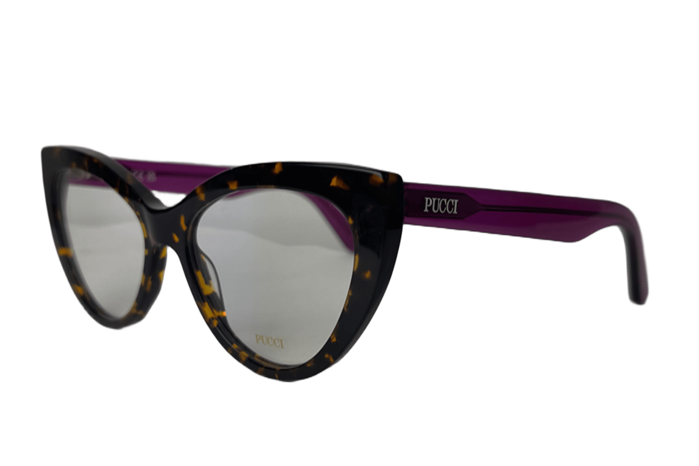 Este óculos Emilio Pucci, com armação gatinho em acetato havana e hastes acetato cristal roxo, é um emblema de autenticidade e feminilidade. O logo nas hastes reflete a herança poderosa da grife, oferecendo um acessório que une inovação com perfeição.