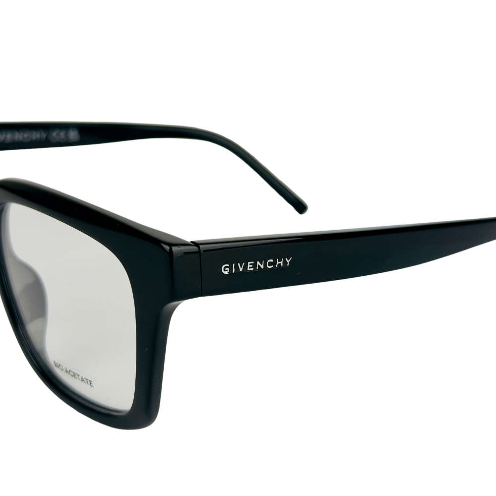 Os óculos Givenchy em acetato preto e hastes com o logo “Givenchy” são um exemplo perfeito de como a marca combina tradição com inovação. Este modelo quadrado é uma peça essencial para aqueles que apreciam acessórios que unem elegância clássica com um toque contemporâneo, personificando o legado de excelência da grife parisiense.
