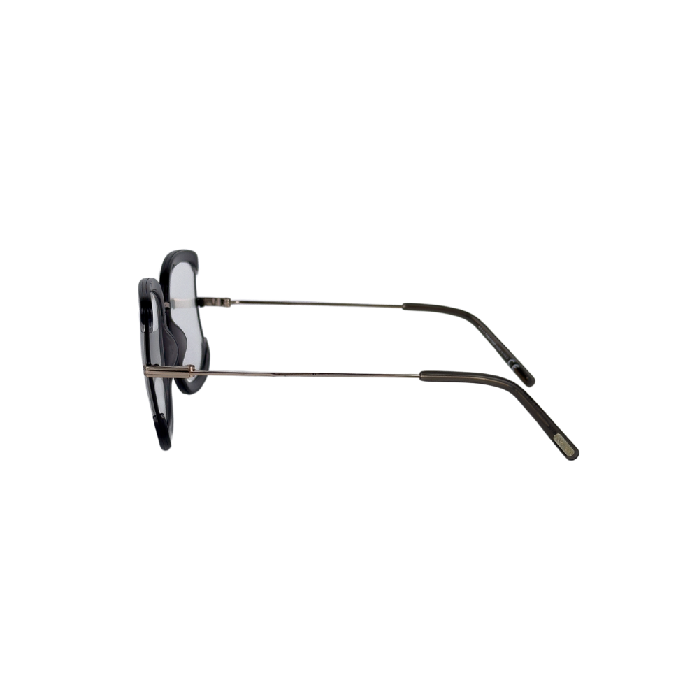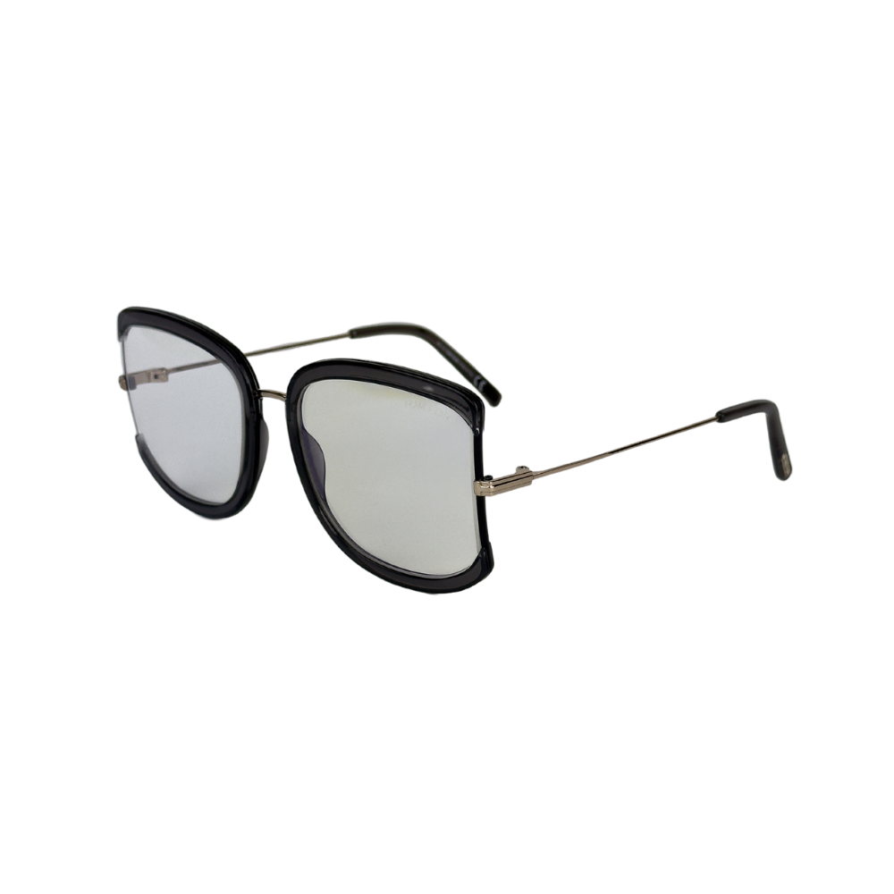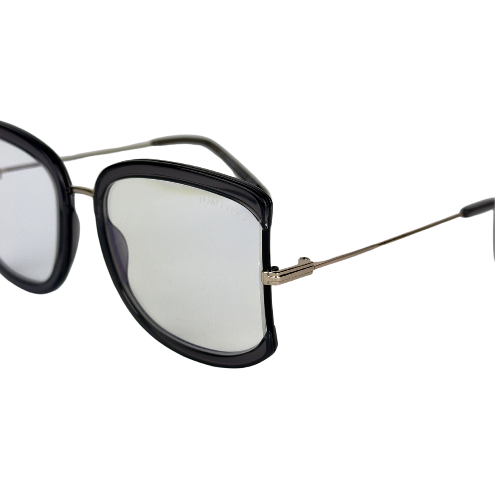 Descubra o charme moderno da Tom Ford com a armação quadrado gatinho em acetato cristal preto e hastes em metal. Sofisticação e arrojo em um só design.