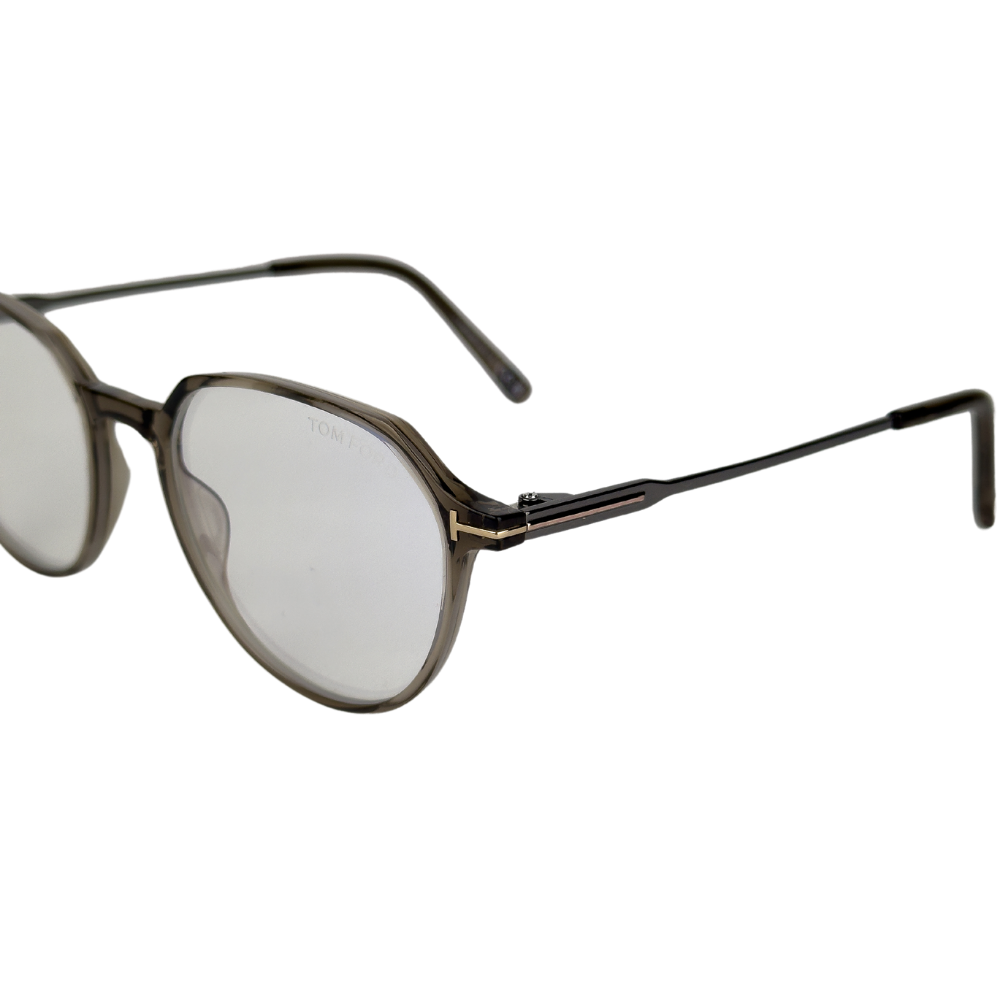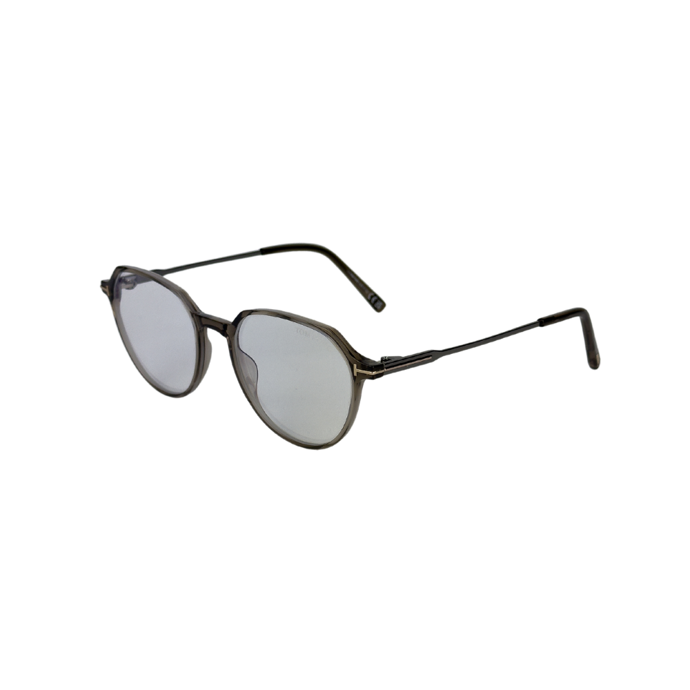 Conheça a elegância atemporal da Tom Ford com esta armação redonda em acetato cristal fumê. As hastes em metal adicionam um toque de modernidade, perfeito para destacar-se com um estilo refinado e distinto.