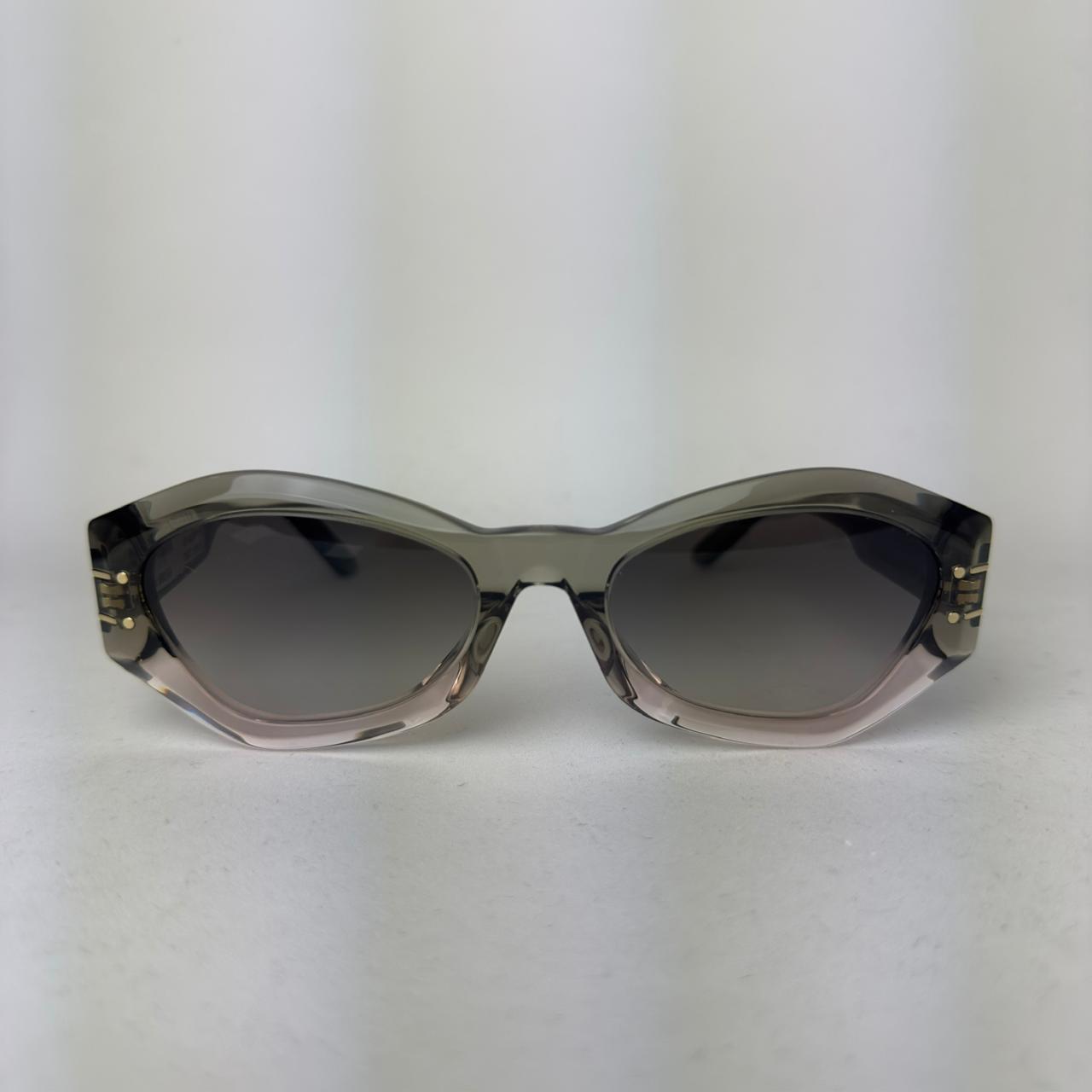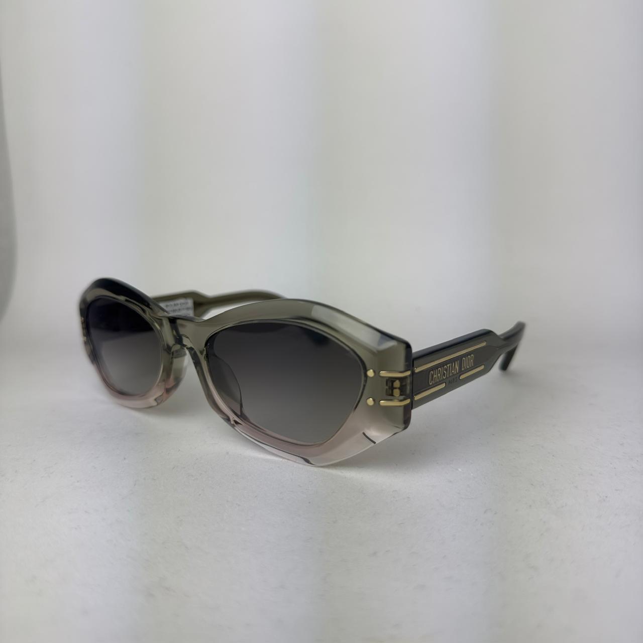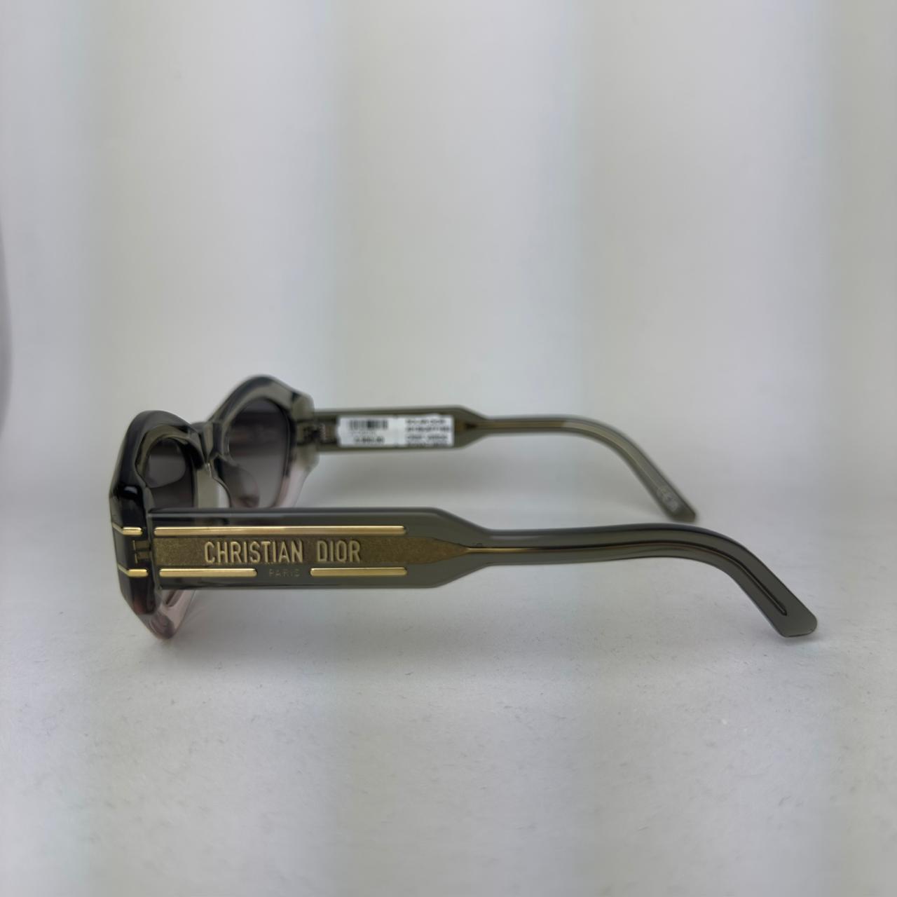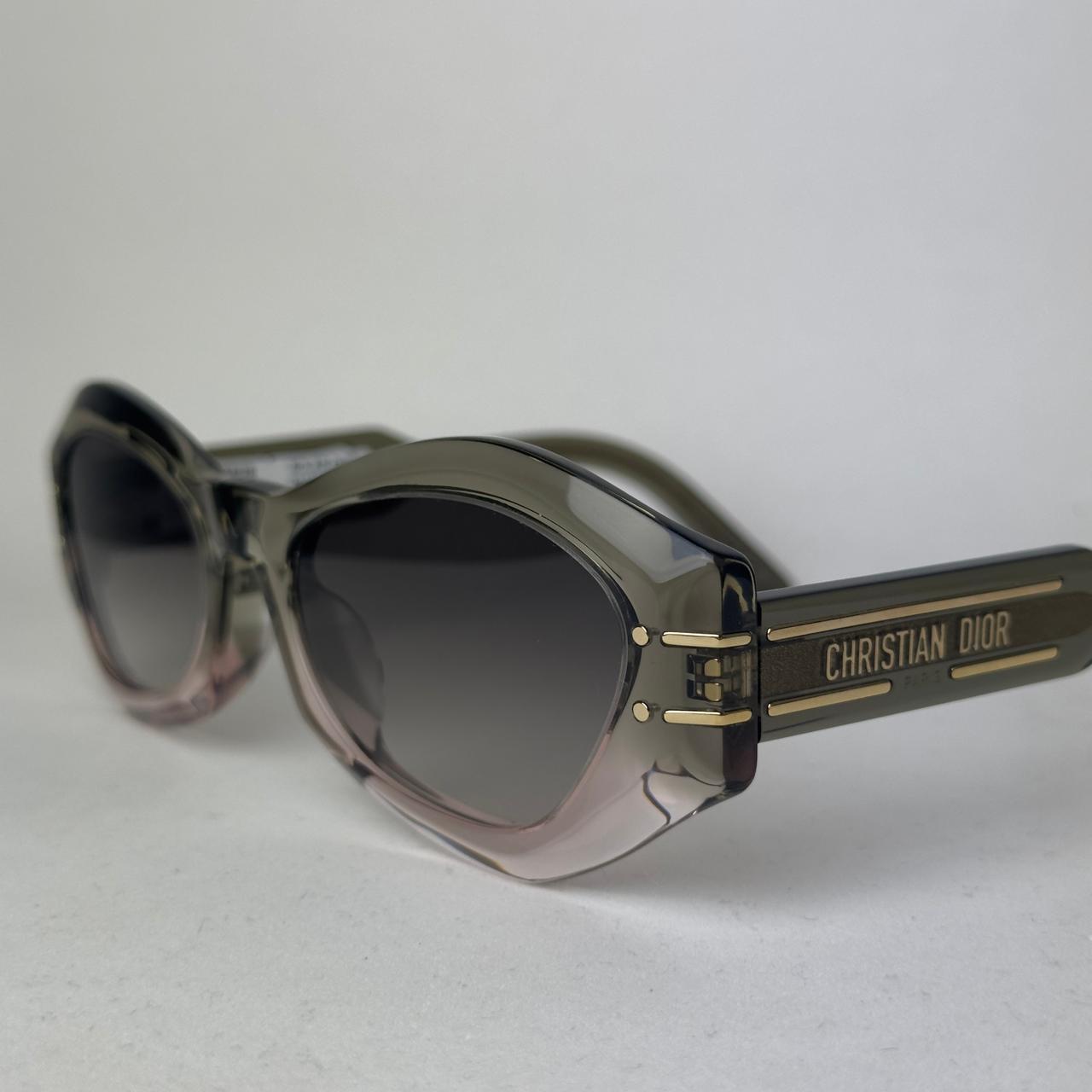 Óculos de sol Dior Signature em formato gatinho retangular, em cristal verde com lentes cosméticas degradês e hastes em acetato, combinando estilo, modernidade e elegância contemporânea.
