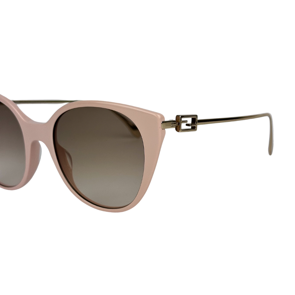Com sua essência romântica e toque moderno, o óculos de sol FENDI em acetato rosa bebê é uma obra-prima da moda. Seu design redondo gatinho e lentes degradê capturam a elegância atemporal da marca.