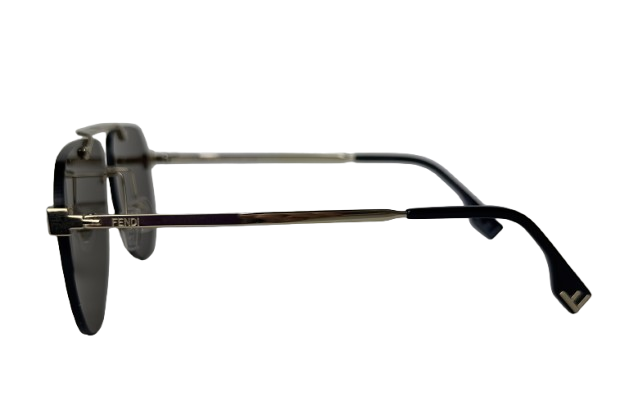 O óculos de sol FENDI em metal dourado é uma peça ousada e sofisticada. Seu design com laterais arredondadas, realçado pelos detalhes exclusivos como o logotipo ‘FENDI’ nas hastes, logotipo “FF” na frontal, transmite uma sensação de contemporaneidade e modernidade.