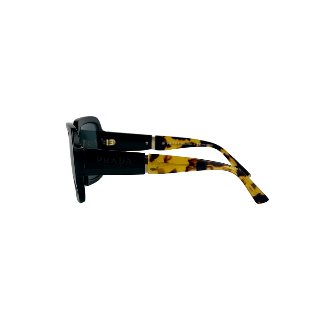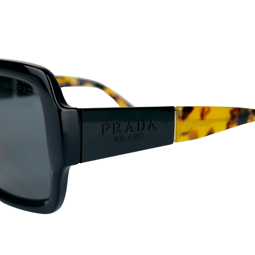 Este modelo quadrado da Prada, em acetato preto, é a definição de um clássico poderoso. As hastes, com o logo “Prada Milano” em relevo, acentuam a sofisticação e a exclusividade do design. Um acessório essencial para quem deseja um visual impactante e elegante.