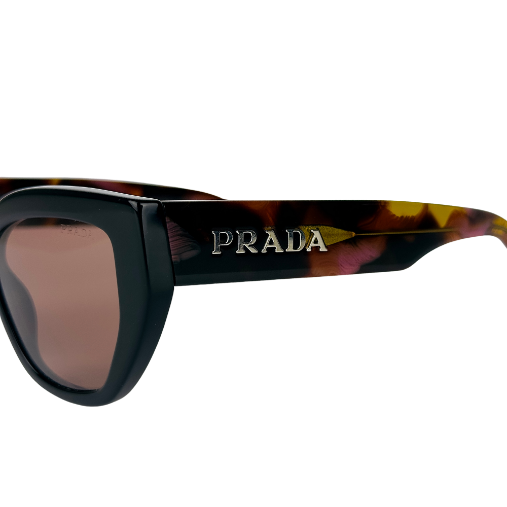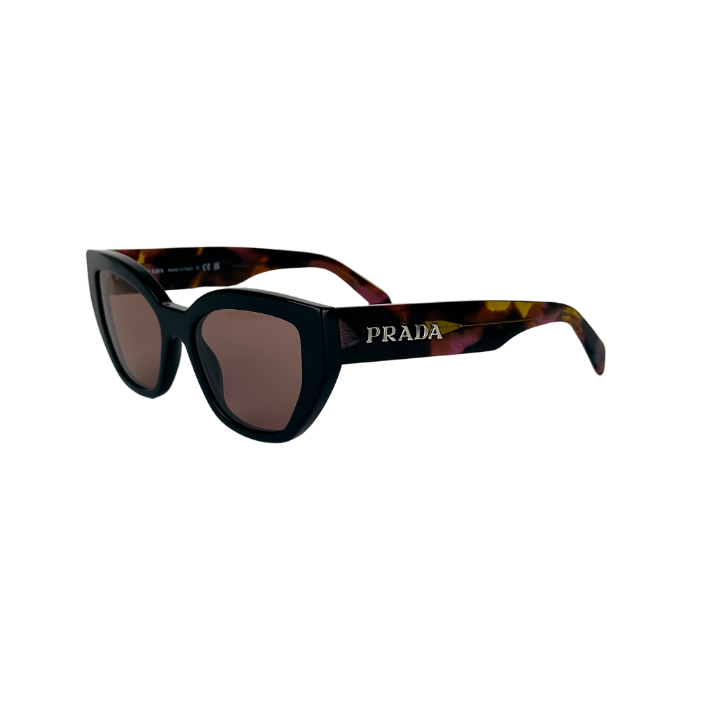 Com um formato gatinho em acetato preto, este óculos da Prada é a definição de estilo moderno e feminino. As hastes em acetato havana com o logo “Prada” garantem um visual elegante e um acabamento refinado.