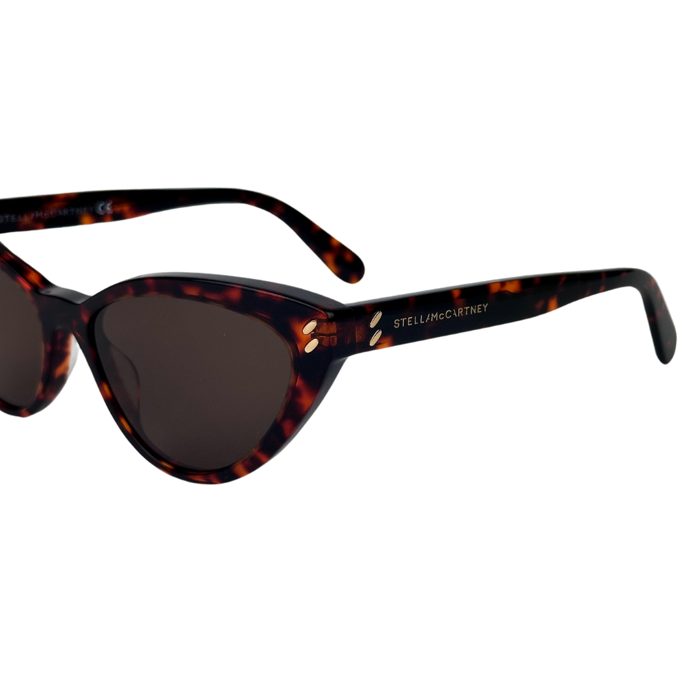 Elegância atemporal ganha vida nos óculos Stella McCartney, com acetato havana e design cat eye. O logotipo dourado nas hastes adiciona um toque de sofisticação discreta.