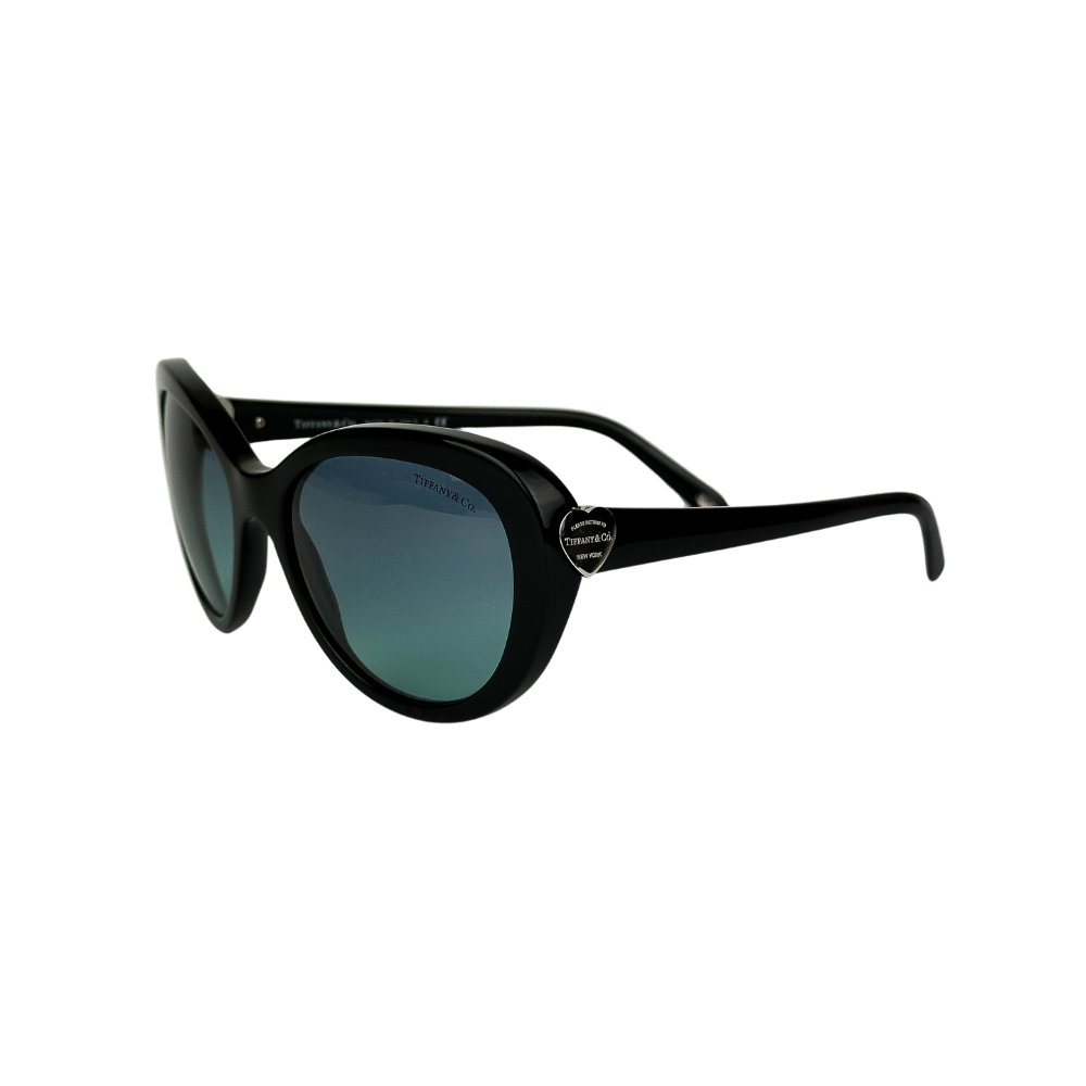 Os óculos de sol da grife Tiffany & Co. são uma expressão de sofisticação e elegância. Este modelo clássico em acetato preto apresenta um detalhe encantador de coração nas hastes, feito em metal prata, refletindo o compromisso da Tiffany com a alta qualidade e o design atemporal.