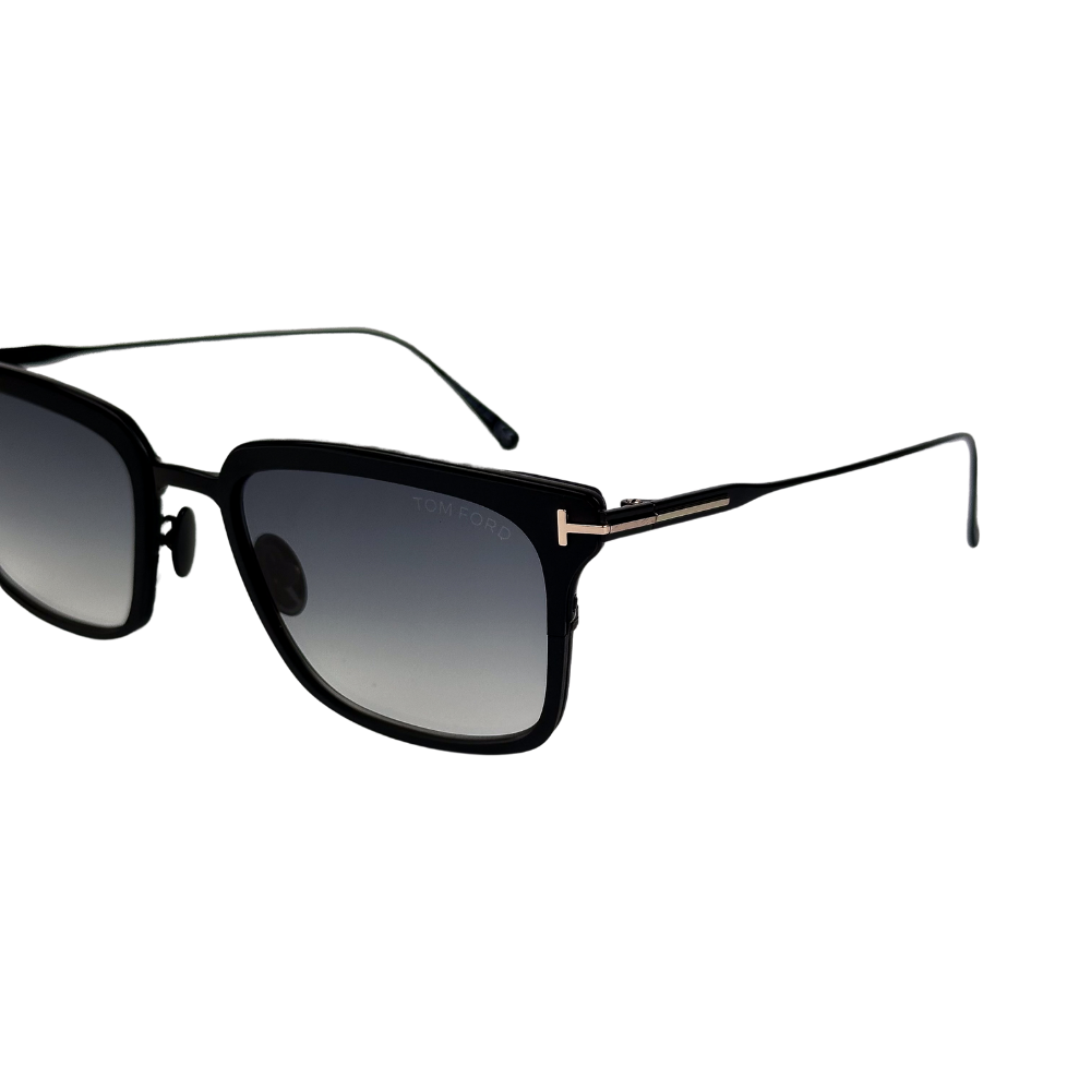 Desperte seu estilo exclusivo com este solar Tom Ford: metal preto, design quadrado, hastes em metal e lentes degradê refletem a elegância distinta desde a fundação da marca pelo renomado estilista Tom Ford.